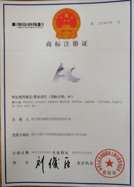 為了打造“百年康安”的品牌,不斷提升公司的知名度,按照康安公司經營理念、宗旨的要求,幾經努力通過了國家工商行政管理總局商標局核準、公告等順序。康安公司申請的logo已獲得了國家工商行政管理總局商標局頒發的第 21731779 號(... |
